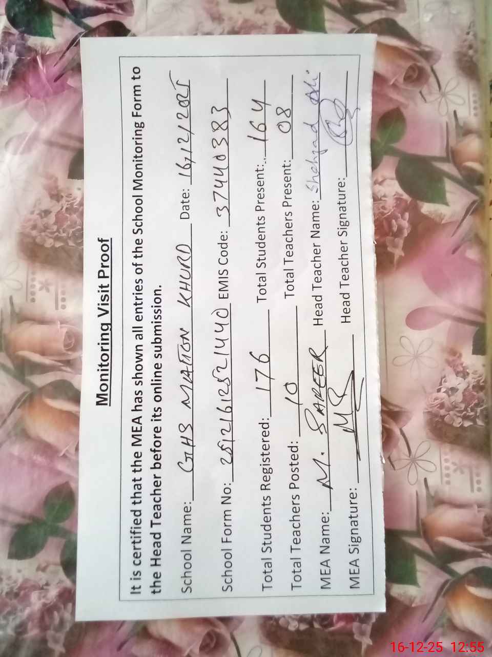 | EMIS Code: 37440383 | Name of School: GHS MATAN KHURD | |||