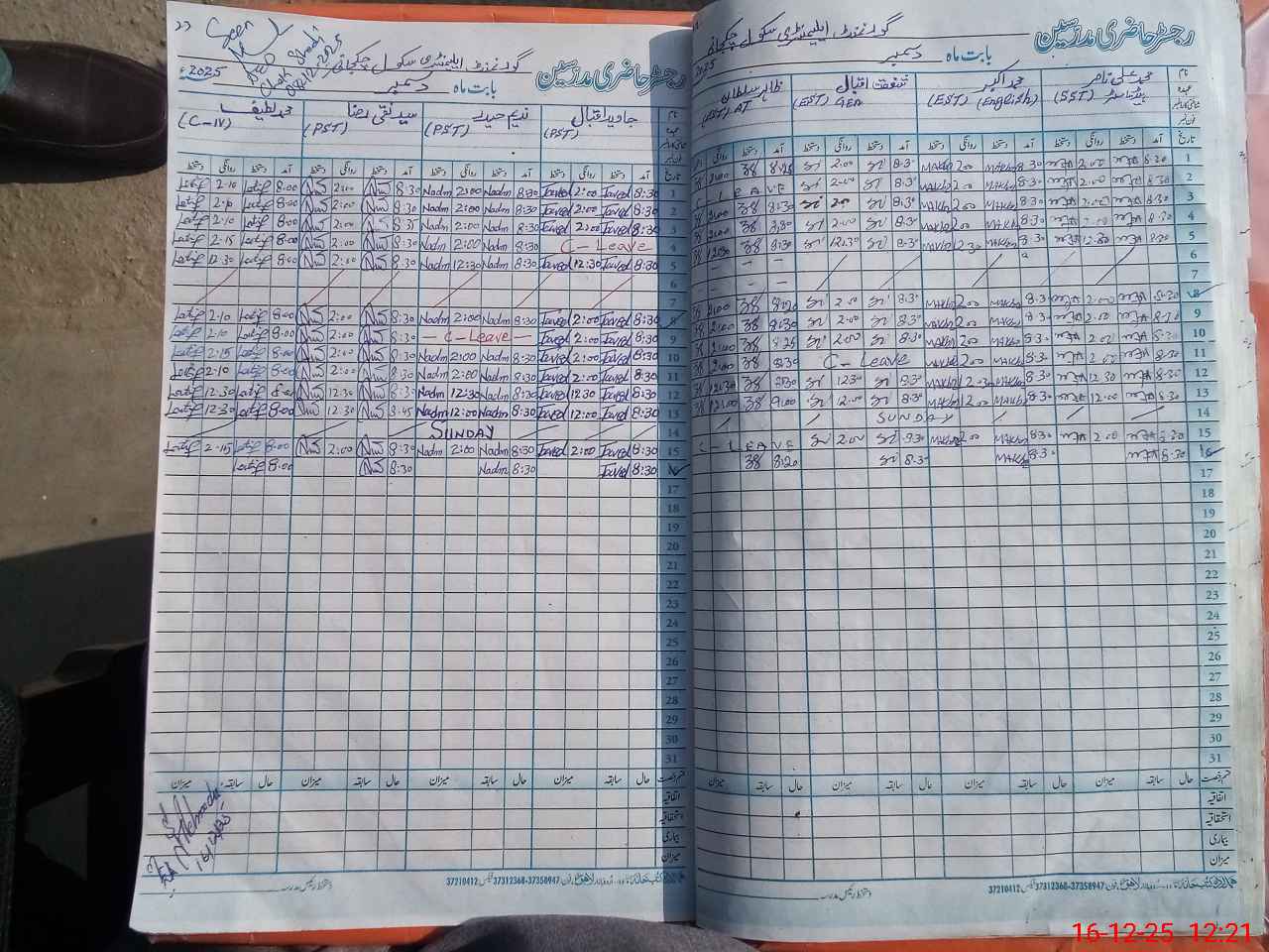 | CNIC | Full Name | Designation | R/C | Absence During Last Calender Month |