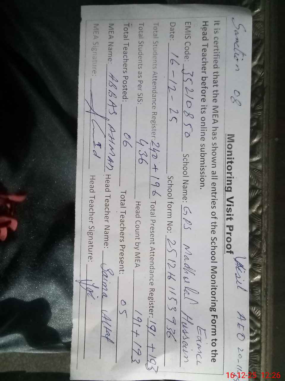 | EMIS Code: 35210850 | Name of School: GPS MADHO LAL HUSSAIN BAGHBAN PURA (EX-MCL) | |||