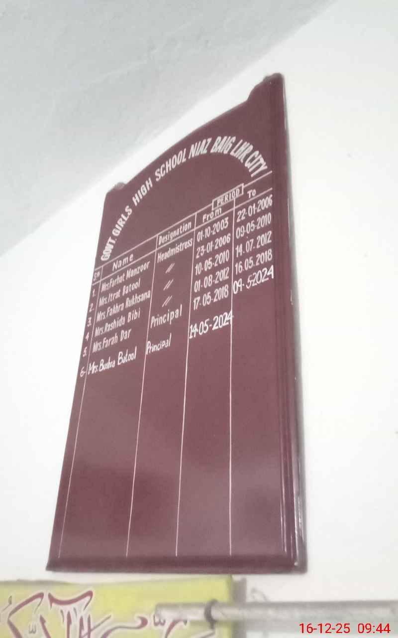| EMIS Code: 35220128 | Name of School: GGHS NIAZ BAIG | |||