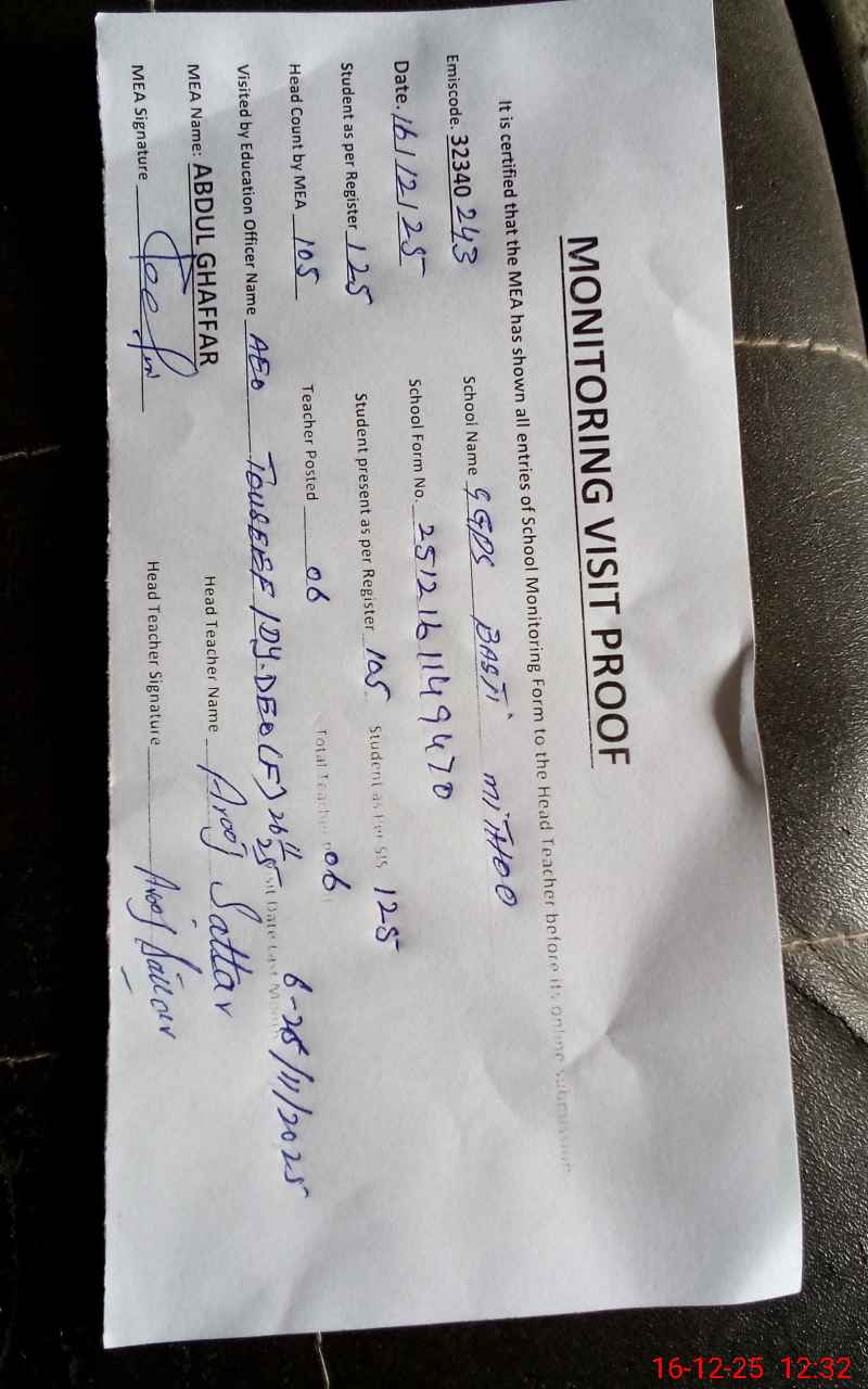 | EMIS Code: 32340243 | Name of School: GGPS BASTI MITHOO | |||