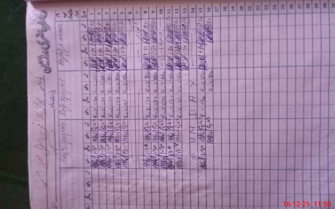 | CNIC | Full Name | Designation | R/C | Absence During Last Calender Month |