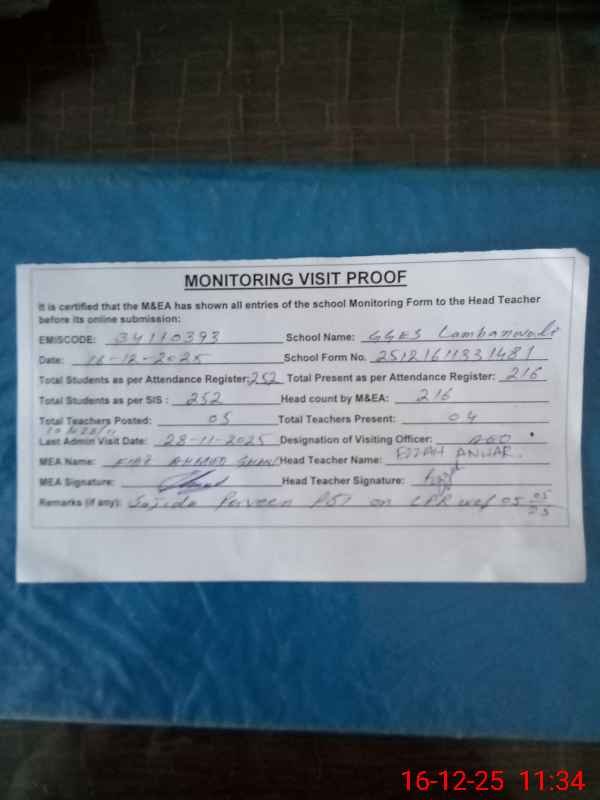 | EMIS Code: 34110393 | Name of School: GGES LAMBAN WALI | |||