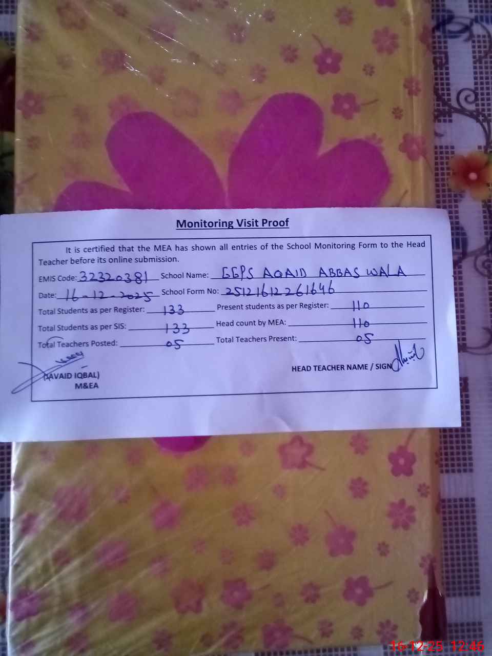 | EMIS Code: 32320381 | Name of School: GGPS AQAID ABAS WALA | |||
