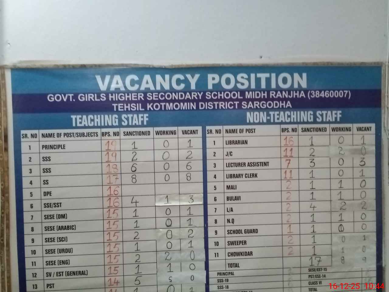 | EMIS Code: 38460007 | Name of School: GGHSS MIDH RANJHA | |||