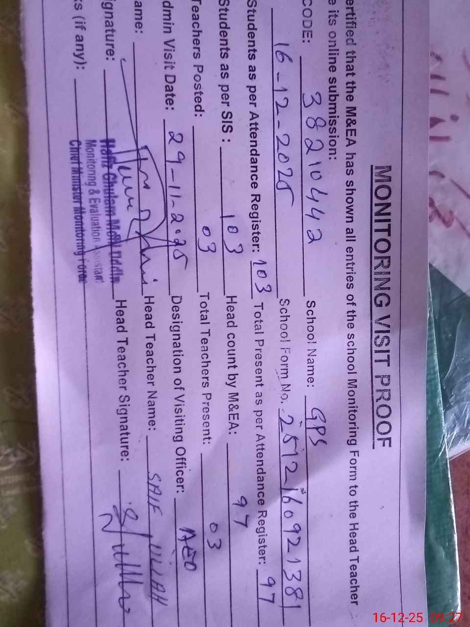 | EMIS Code: 38210442 | Name of School: GPS KHAKHAN WALA | |||