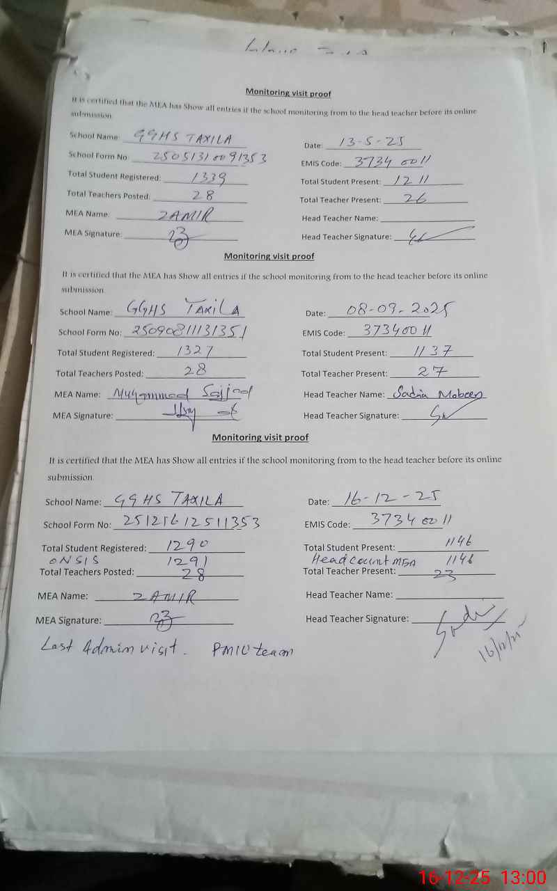 | EMIS Code: 37340011 | Name of School: GGHS TAXILA | |||