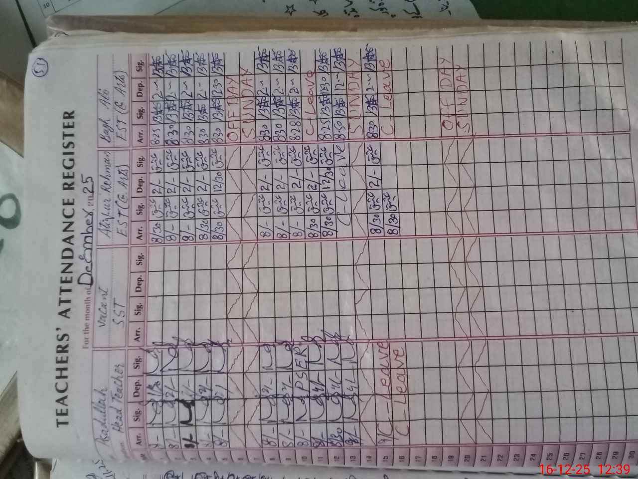| CNIC | Full Name | Designation | R/C | Absence During Last Calender Month |