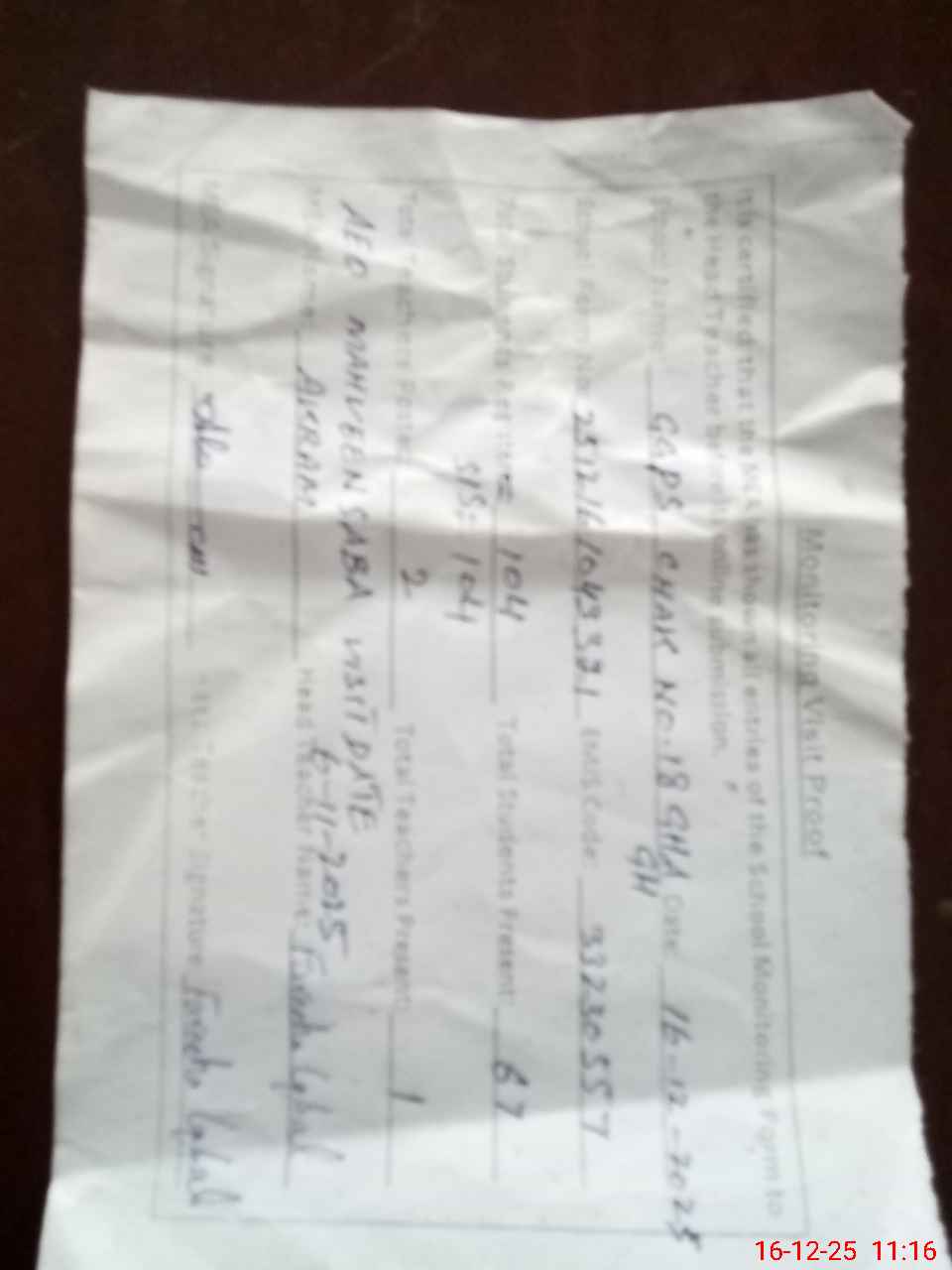 | EMIS Code: 33230557 | Name of School: GGPS CHAK NO.18 GHAGH | |||