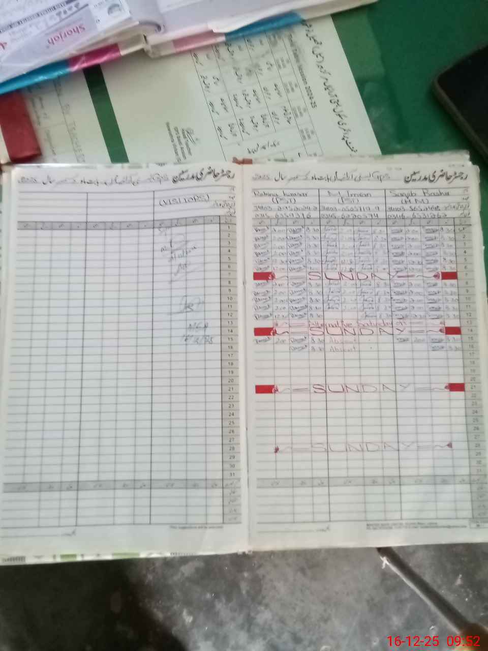 | CNIC | Full Name | Designation | R/C | Absence During Last Calender Month |