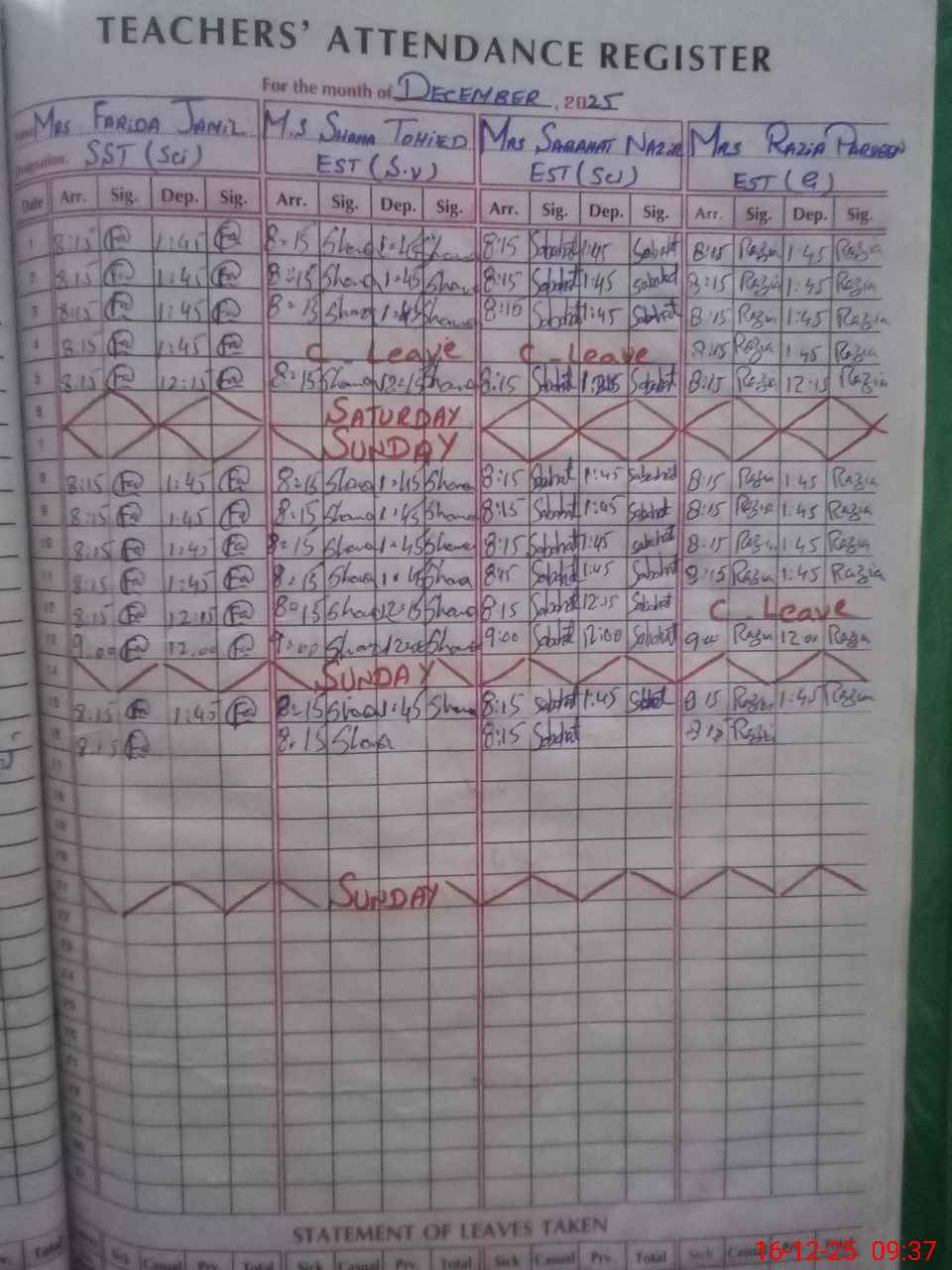 | 36**** | Sh**** Ak**** | PST Arts | Regular | 0 | 0 | 0 | 0 | 0 | 0 | 0 | 0 | 0 | Maternity |