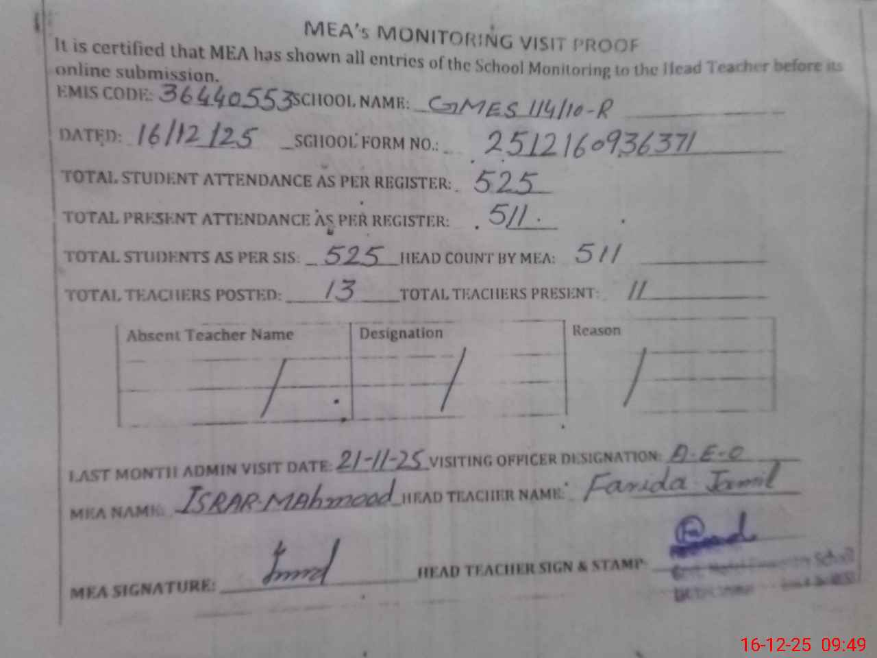 | EMIS Code: 36440553 | Name of School: GMES 114/10-R, JAHANIAN | |||