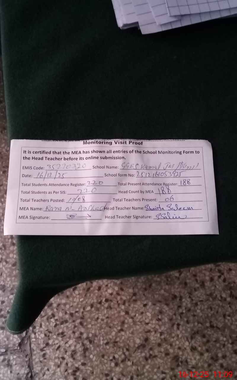 | EMIS Code: 35220320 | Name of School: GGES KAMAL JUNIOR MODEL URDU BAZAR LAHORE | |||