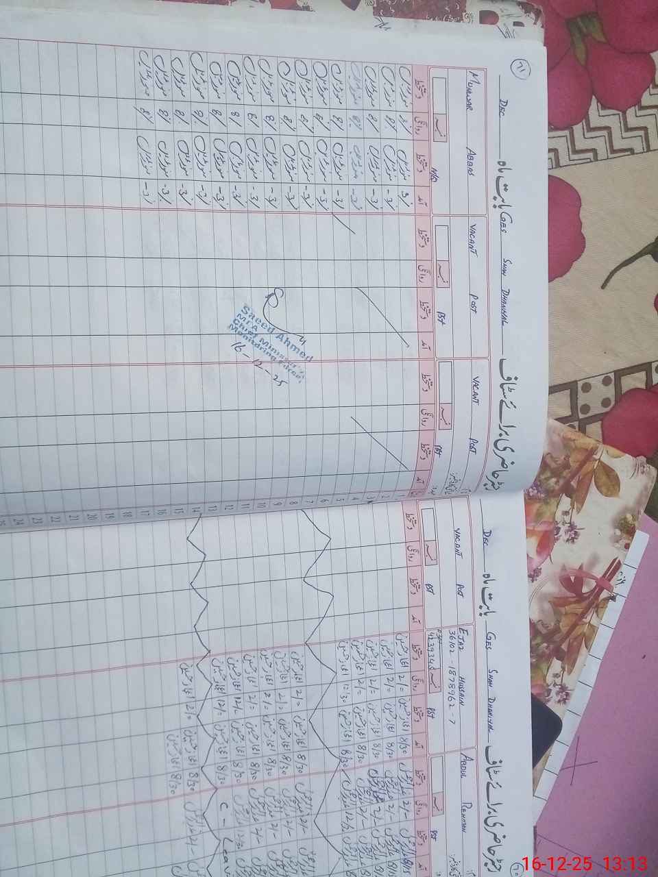 | CNIC | Full Name | Designation | R/C | Absence during last cal. month |