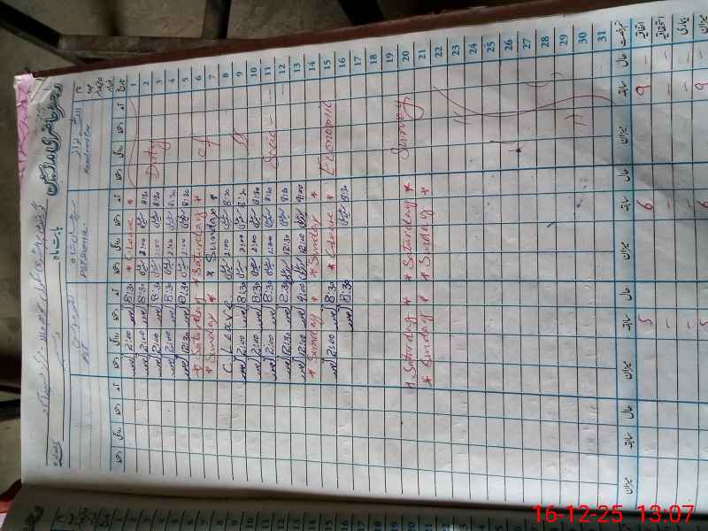 | CNIC | Full Name | Designation | R/C | Absence During Last Calender Month |