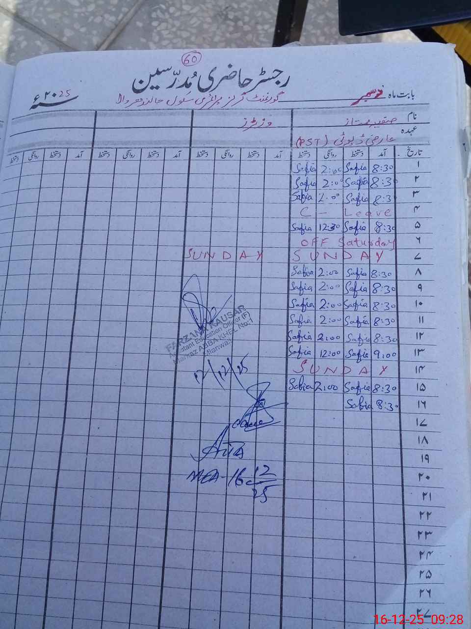 | Name: Zu**** Bi**** Designation: (School Headmaster's/Headmistress's) PST Phone/Cell Number: 03**** |