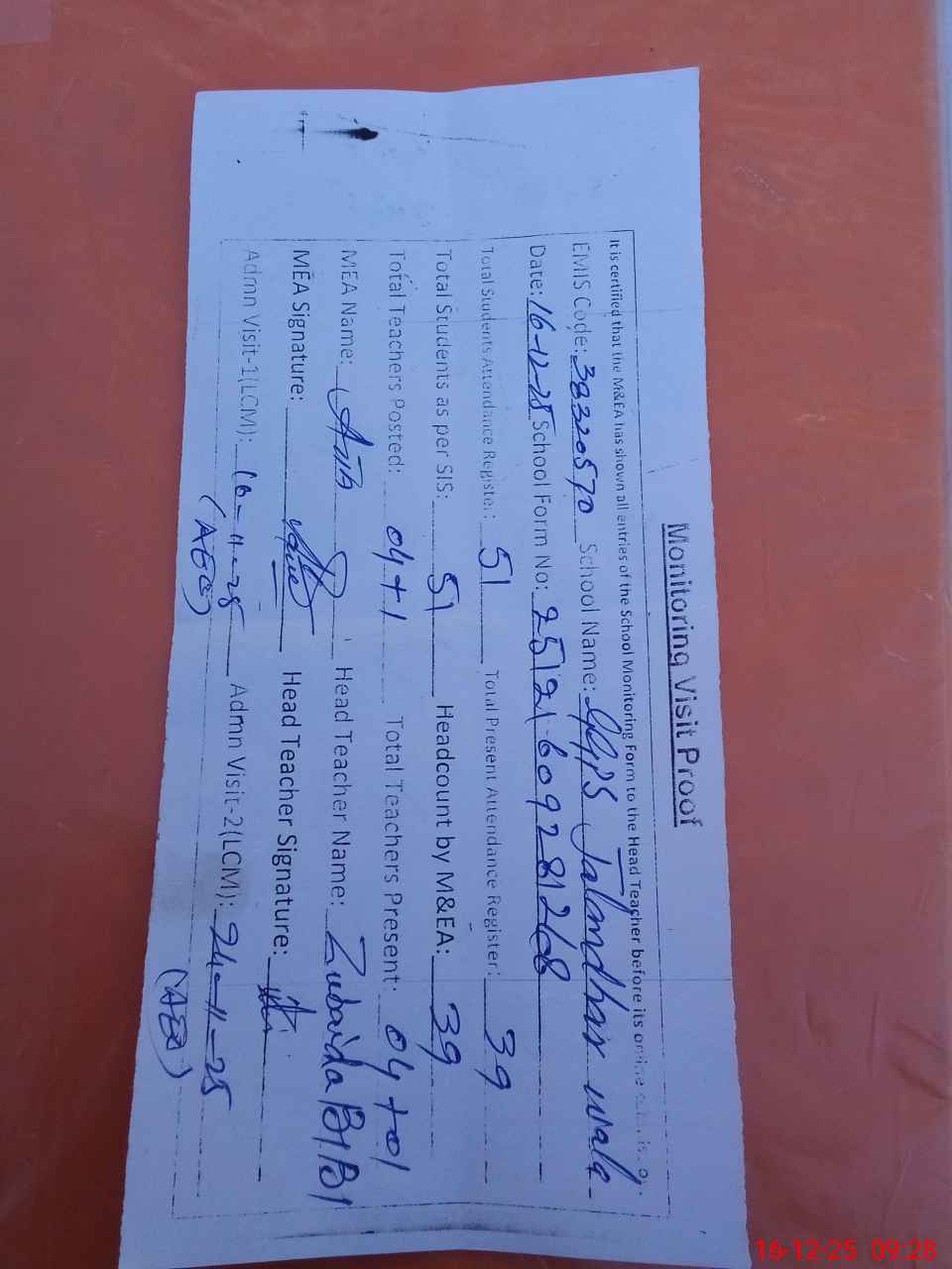 | EMIS Code: 38320570 | Name of School: GGPS JALANDHAR WALA | |||