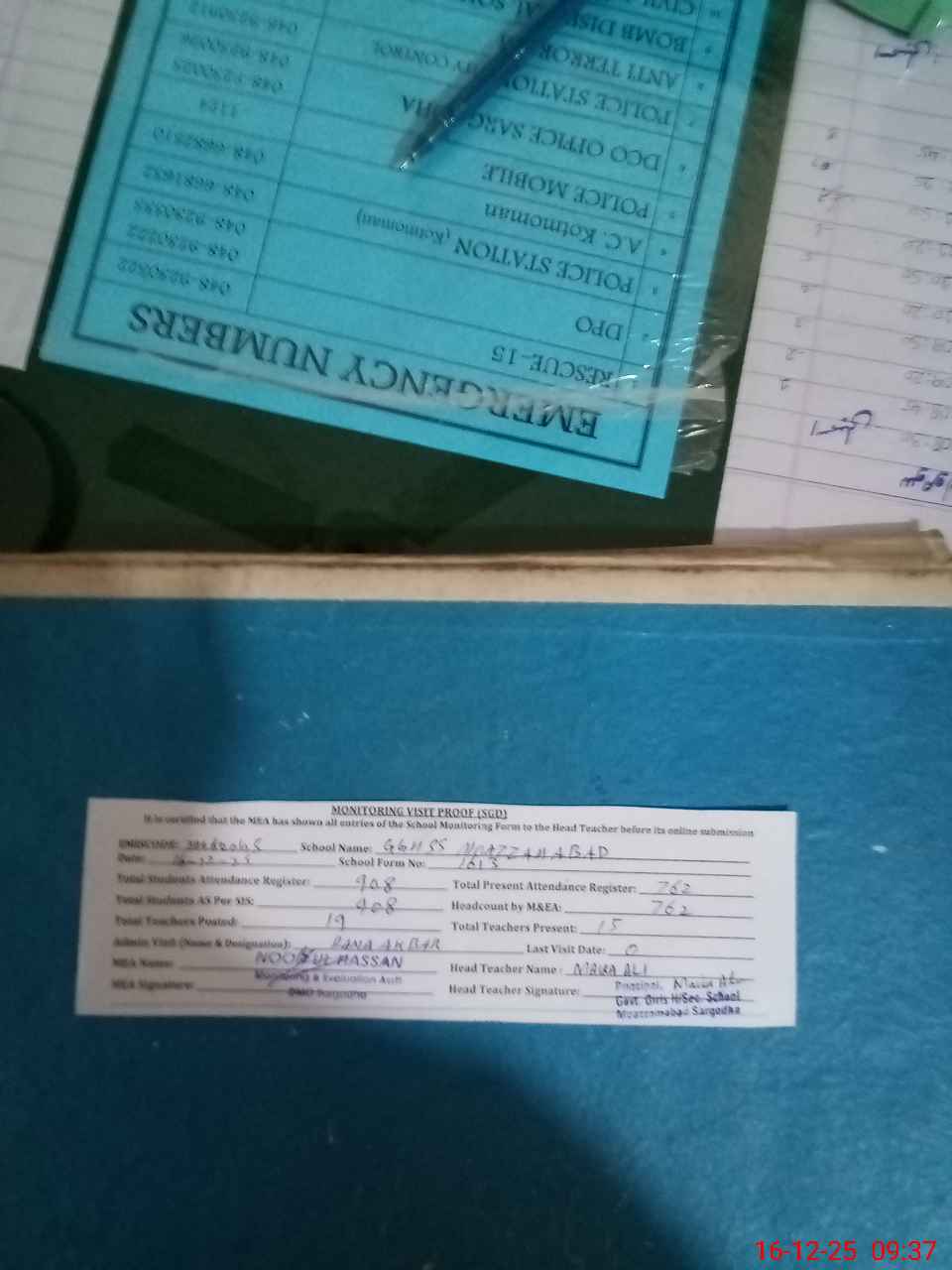 | EMIS Code: 38460045 | Name of School: GGHSS MUAZZAM ABAD | |||
