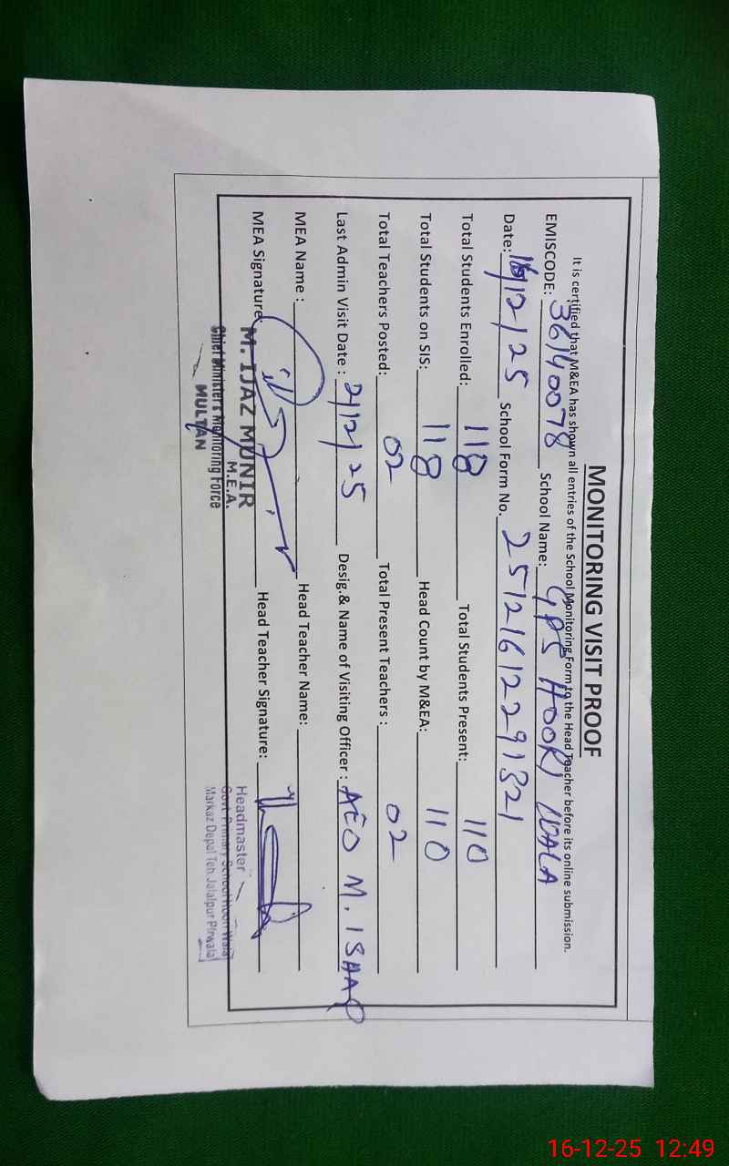 | EMIS Code: 36140078 | Name of School: GPS HOORI WALA | |||