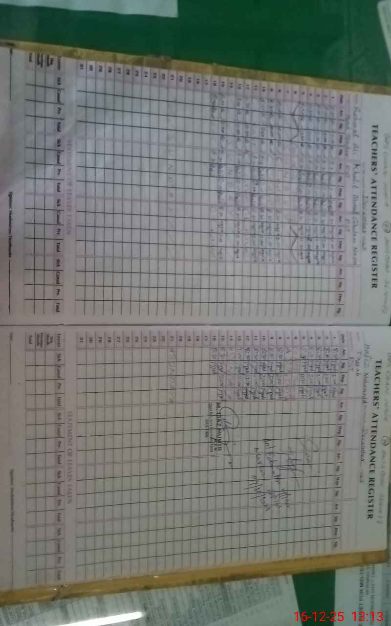 | CNIC | Full Name | Designation | R/C | Absence During Last Calender Month |