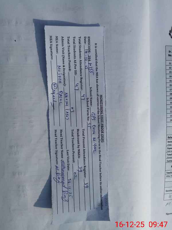 | EMIS Code: 38410355 | Name of School: GPS DERA MUHAMMAD YAR | |||