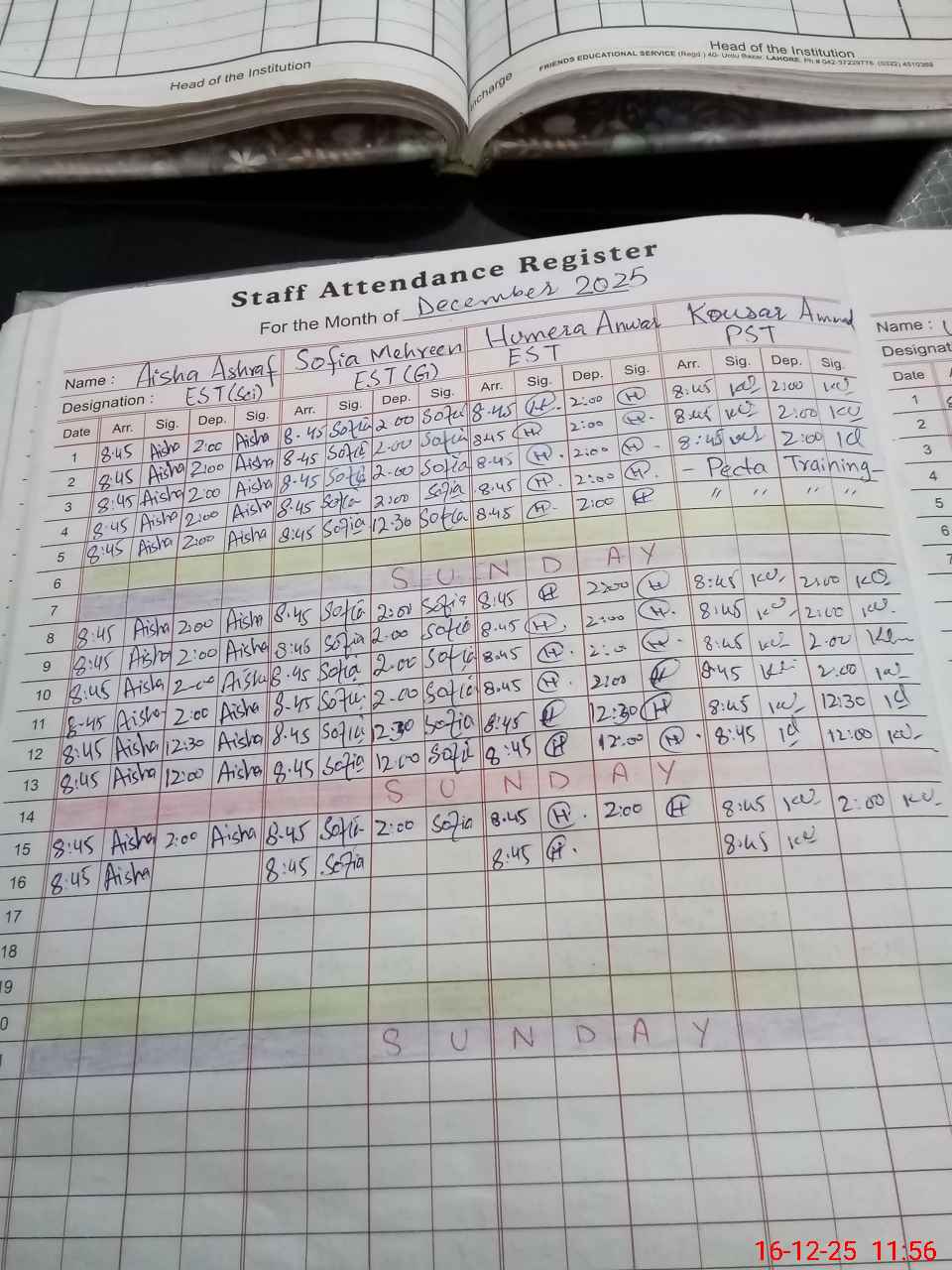 | Remarks (Use Separate Page if Required): 10 students difference found in Roznamcha and head count 35220346 | |||||