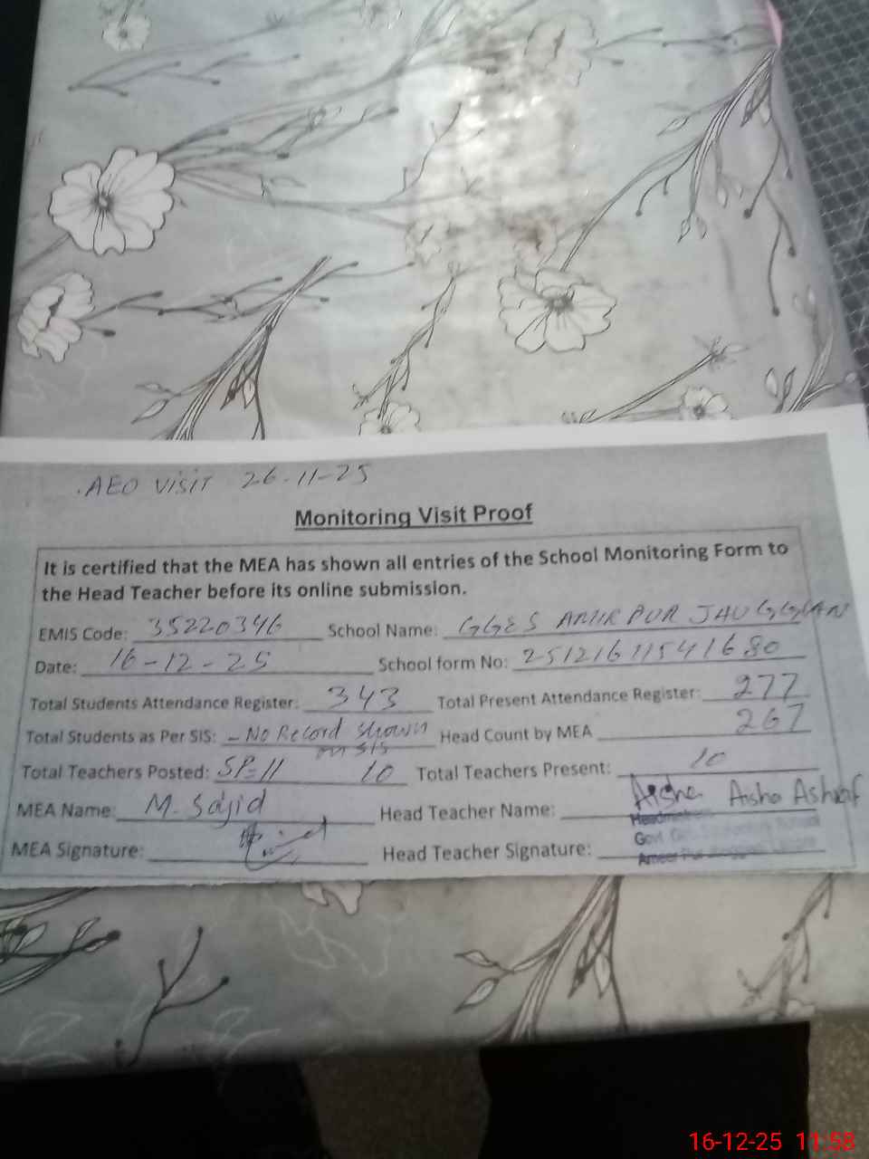 | Certified that this School was Inspected by the Undersigned MEA/DMO Today and the Information Stated Above is as Per Record. | |||||