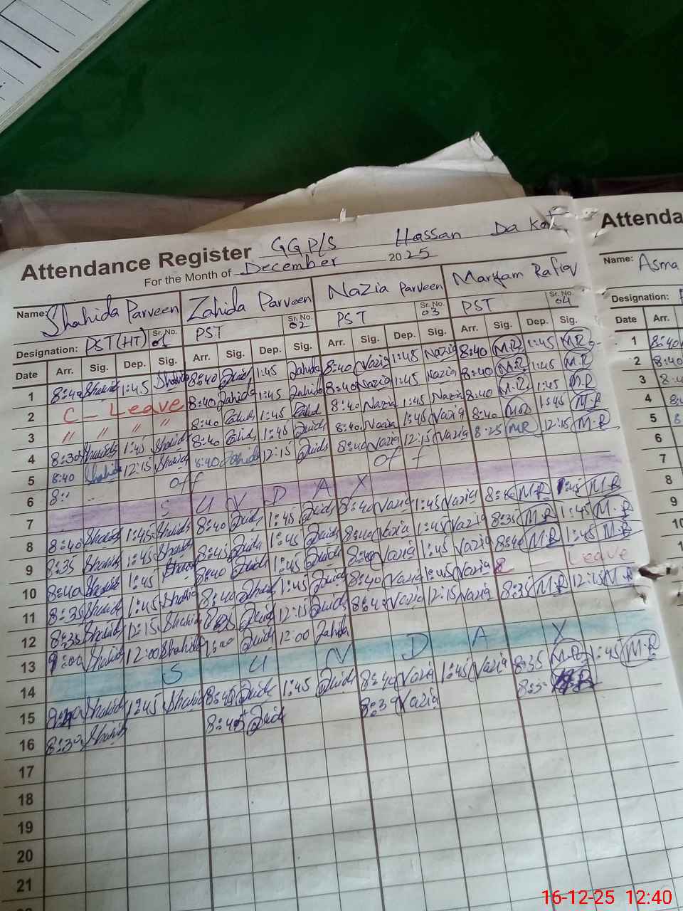 | CNIC | Full Name | Designation | R/C | Absence During Last Calender Month |