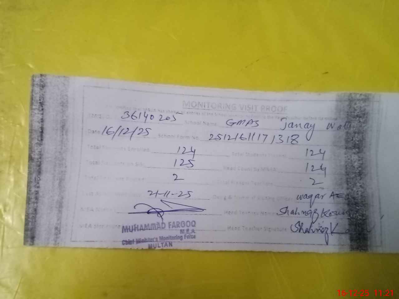 | EMIS Code: 36140205 | Name of School: GMPS JANAY WALA TEH. JALALPUR PIRWALA | |||