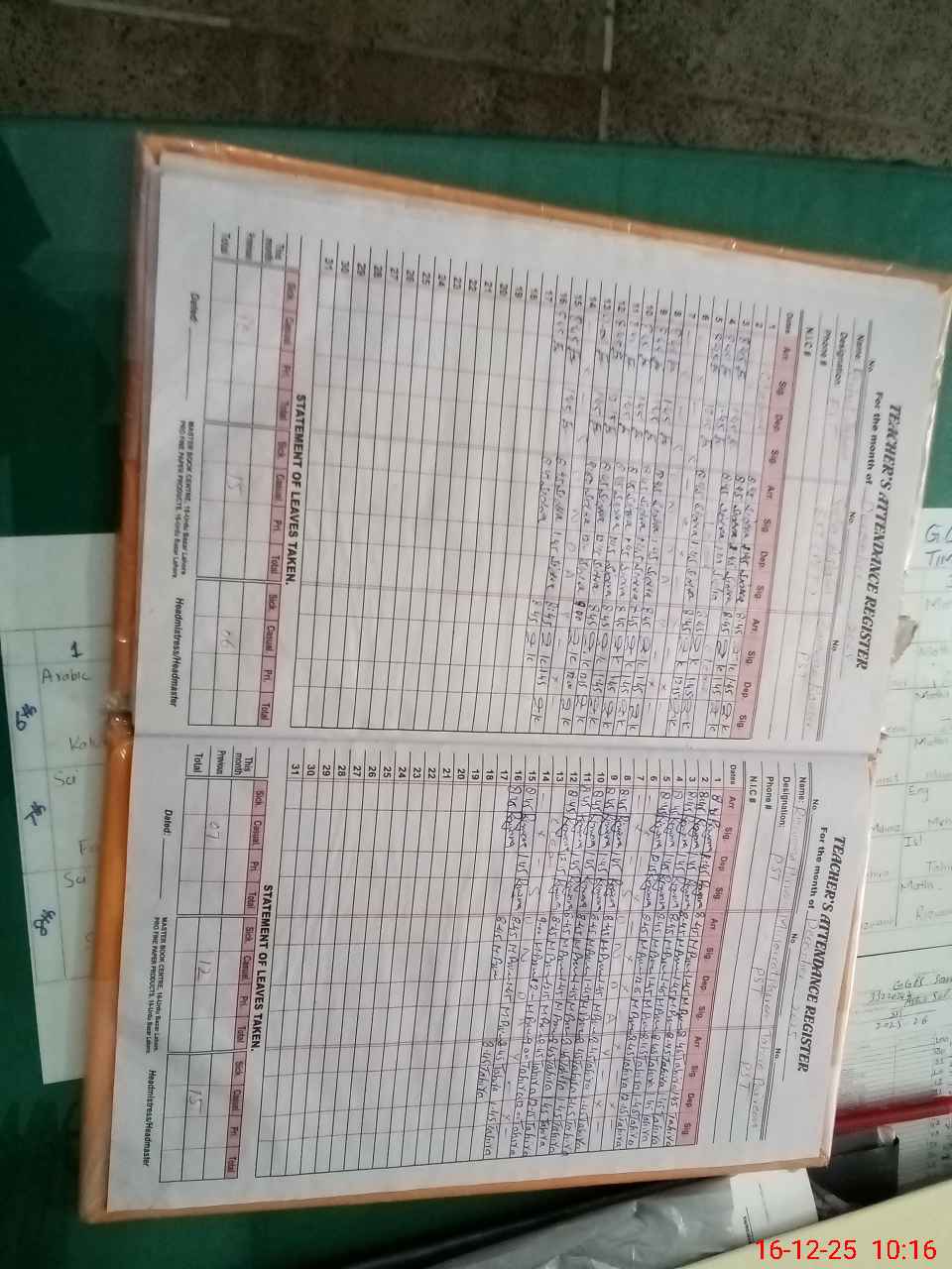 | CNIC | Full Name | Designation | R/C | Absence During Last Calender Month |