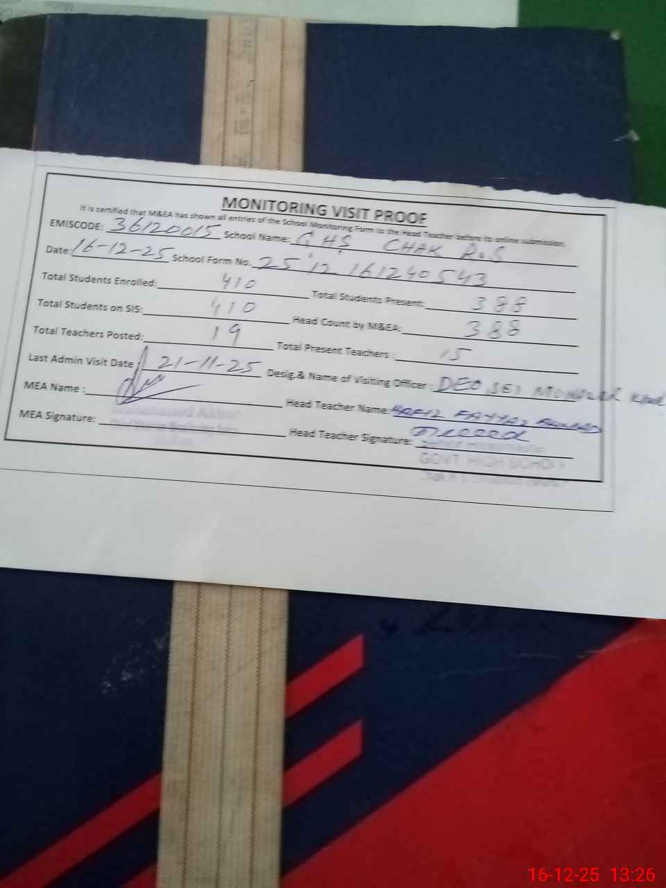 | EMIS Code: 36120015 | Name of School: GHS CHAK R S SHUJABAD | |||