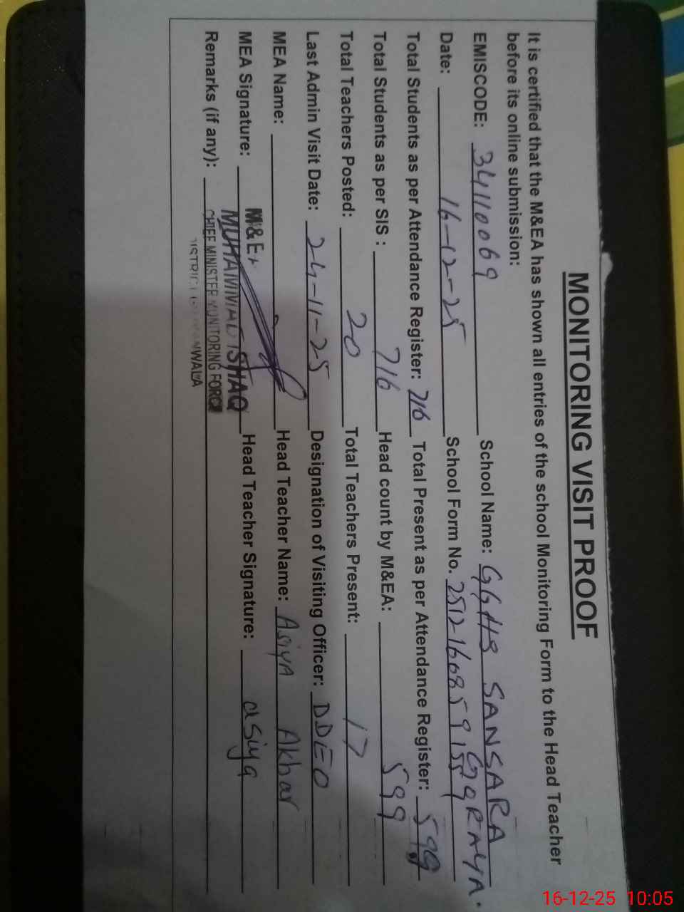 | EMIS Code: 34110069 | Name of School: GGHS SANSARA GORAYA | |||