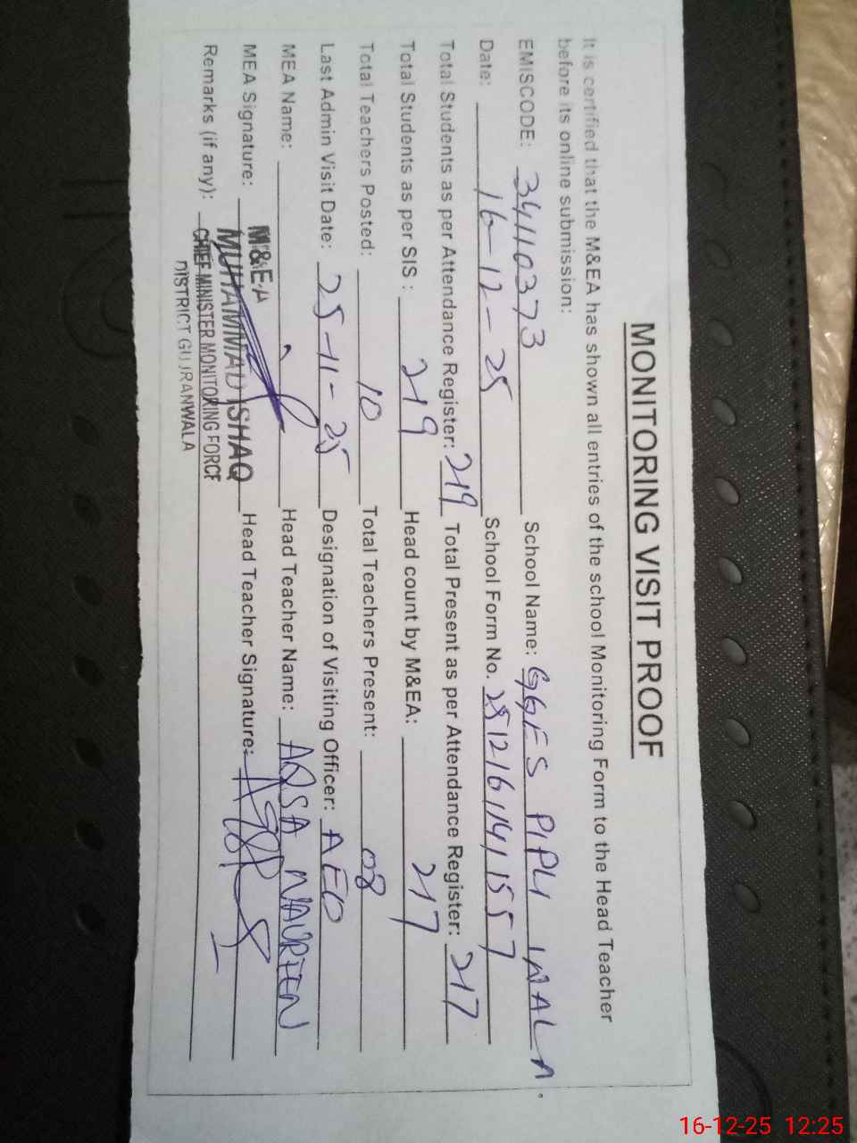 | Certified that this School was Inspected by the Undersigned MEA/DMO Today and the Information Stated Above is as Per Record. | |||||