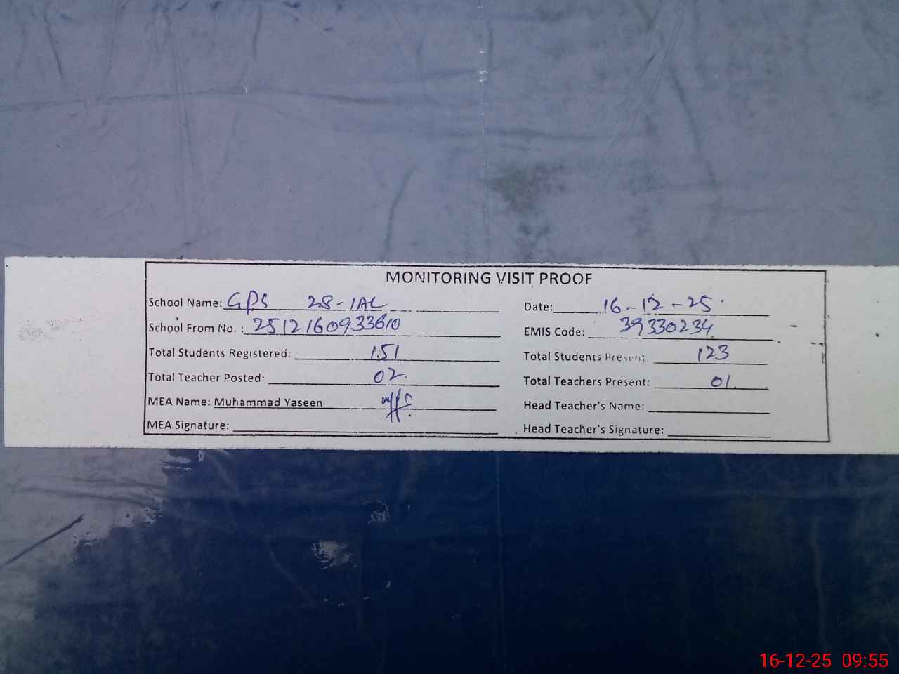 | EMIS Code: 39330234 | Name of School: GPS CHAK 28/1-AL | |||