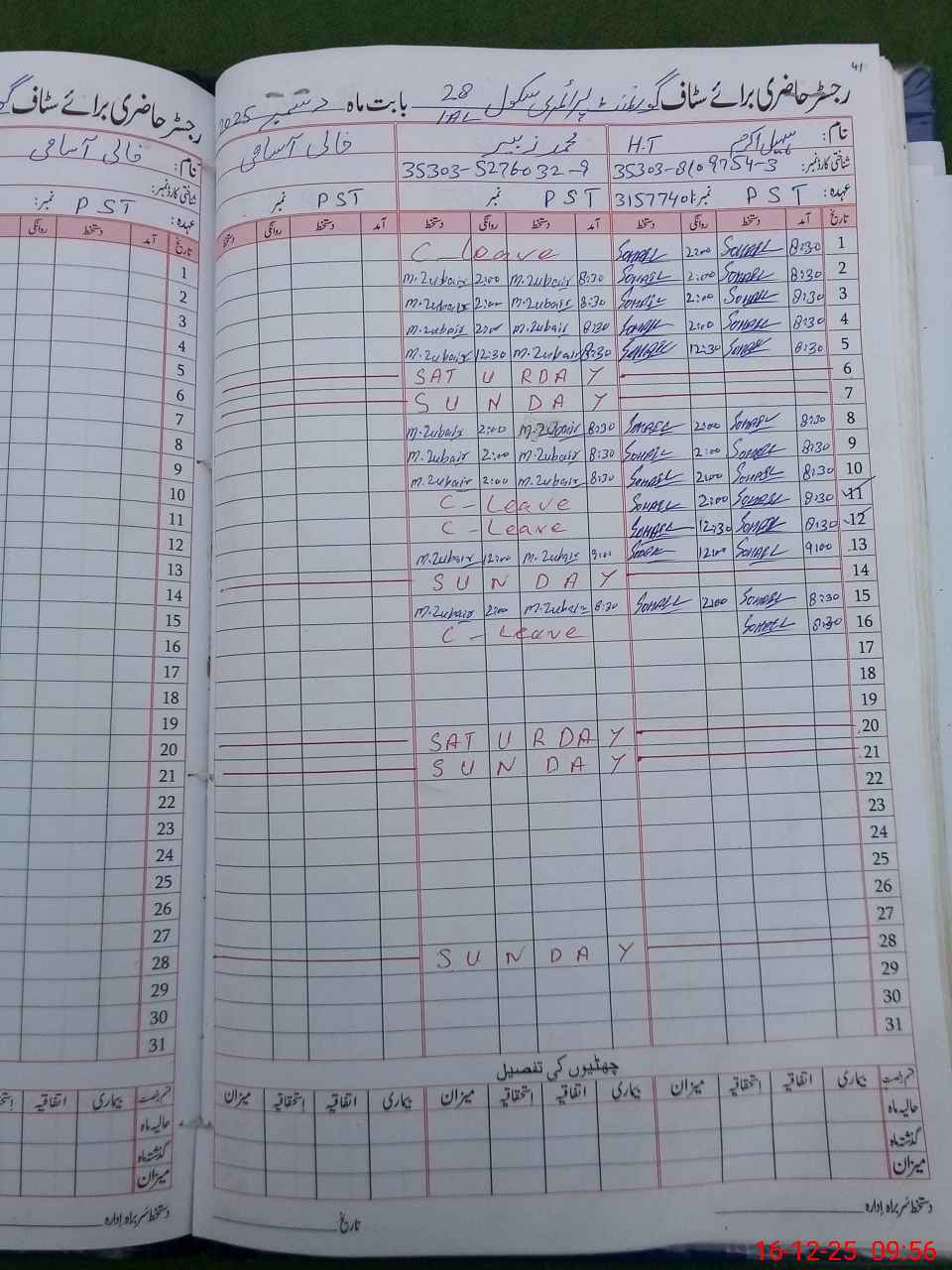 | 35**** | Mu**** Zu**** | PST | Regular | 5 | 0 | 0 | 0 | 0 | 0 | 0 | 0 | 5 | Absent (Un-Authorized) |