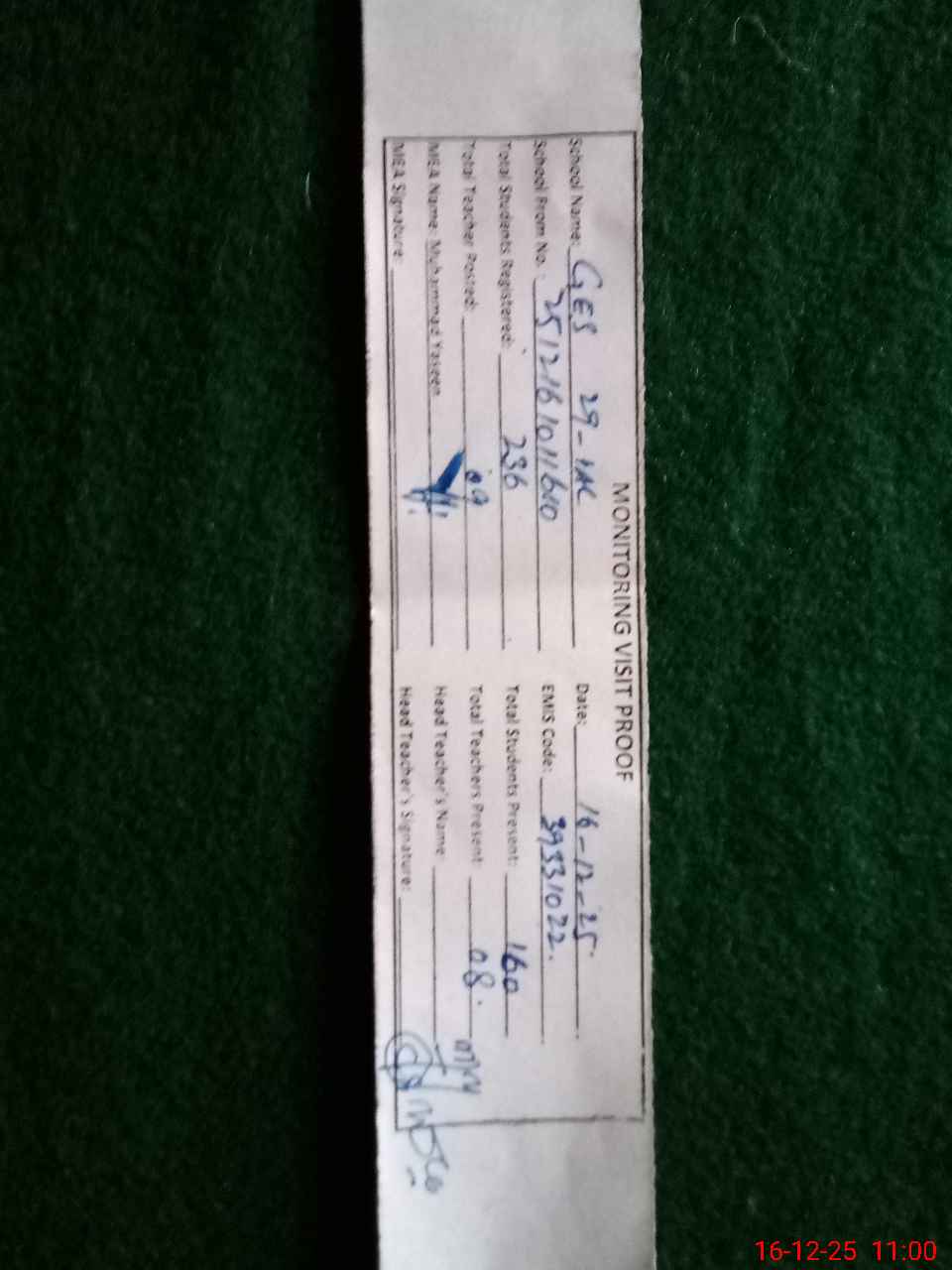| EMIS Code: 39331022 | Name of School: GES CHAK NO. 29/1-AL | |||
