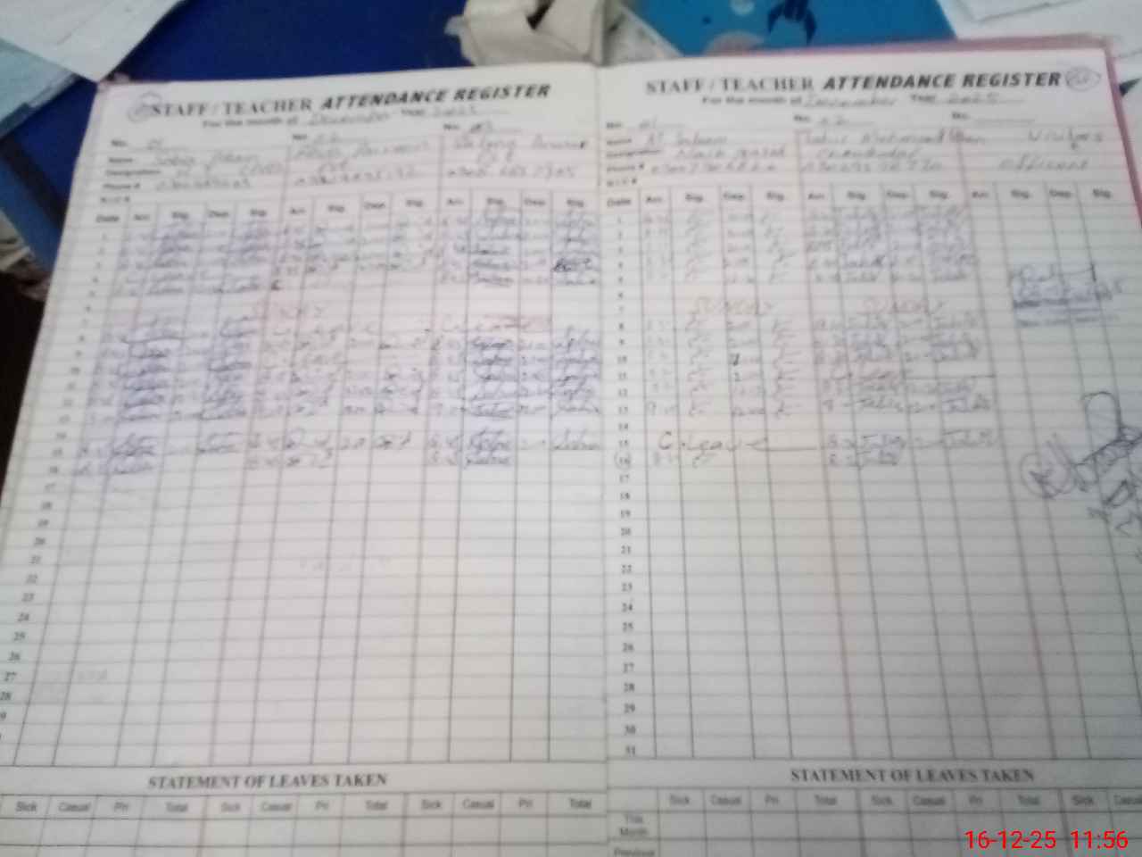 | CNIC | Full Name | Designation | R/C | Absence During Last Calender Month |