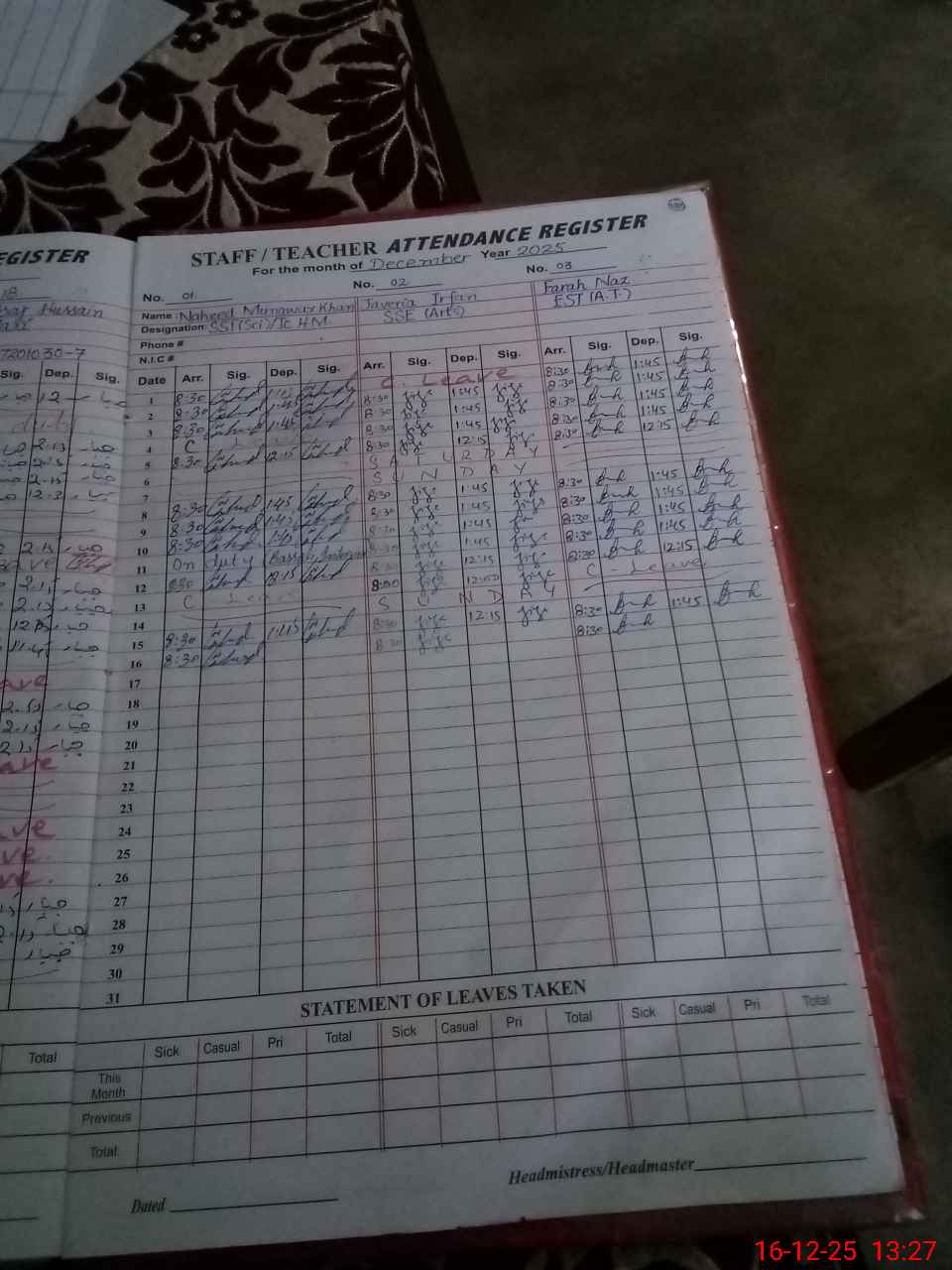 | Name: Na**** Mu**** Designation: (School Headmaster's/Headmistress's) Incharge Head Phone/Cell Number: 03**** |