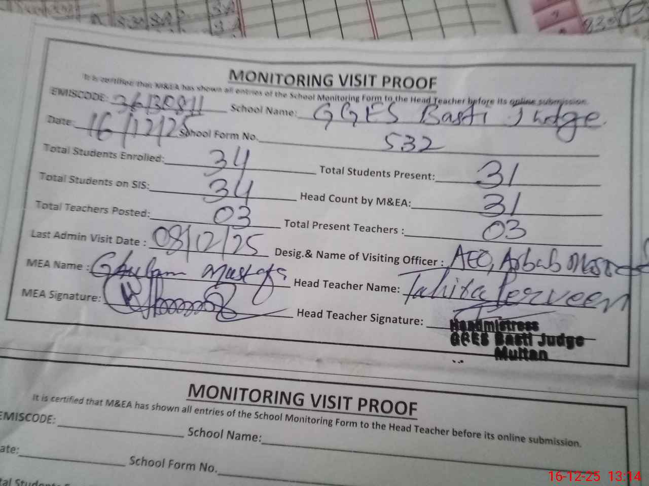 | EMIS Code: 36130811 | Name of School: GGES Basti Judge Multan | |||