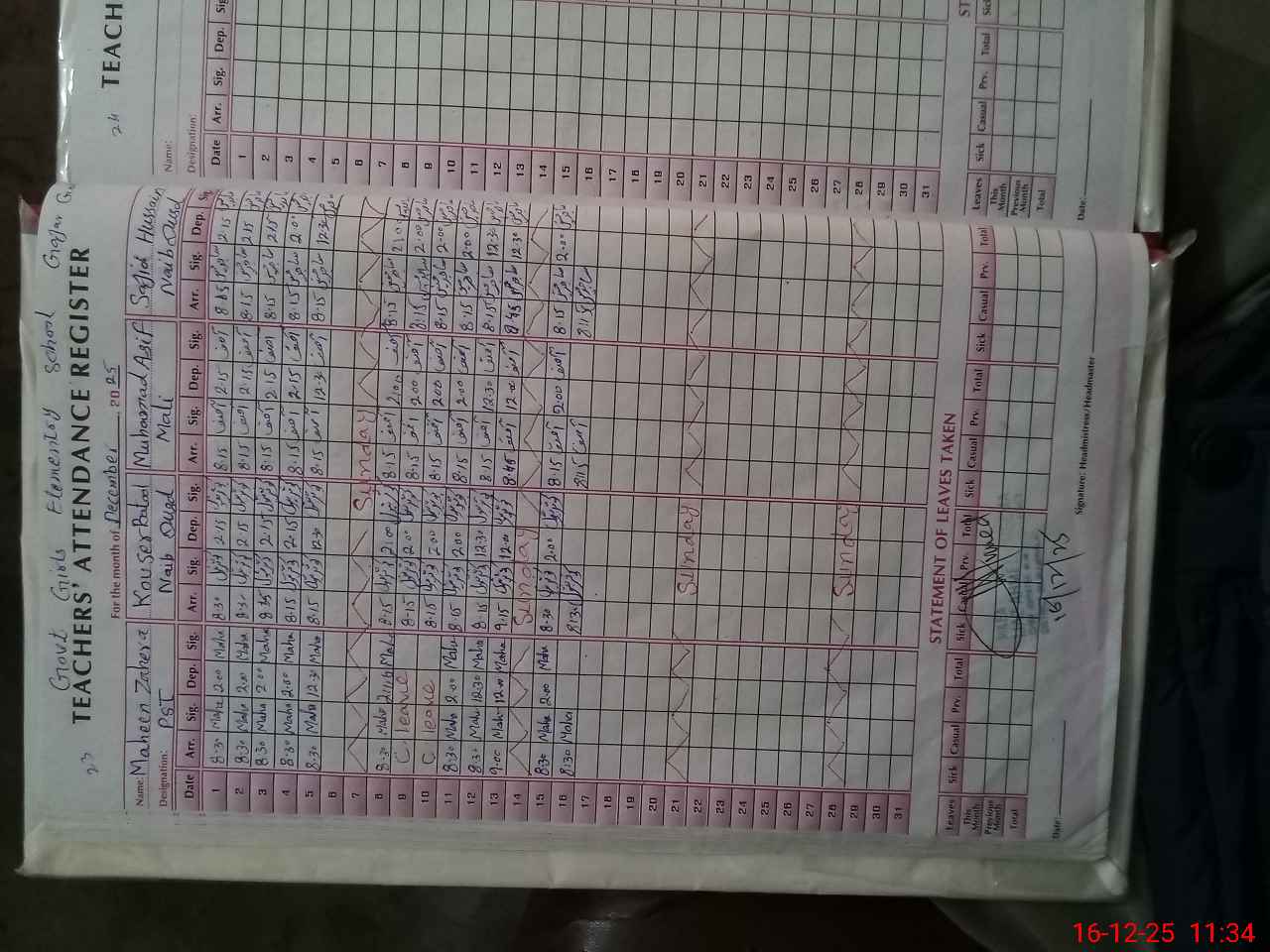 | CNIC | Full Name | Designation | R/C | Absence During Last Calender Month |