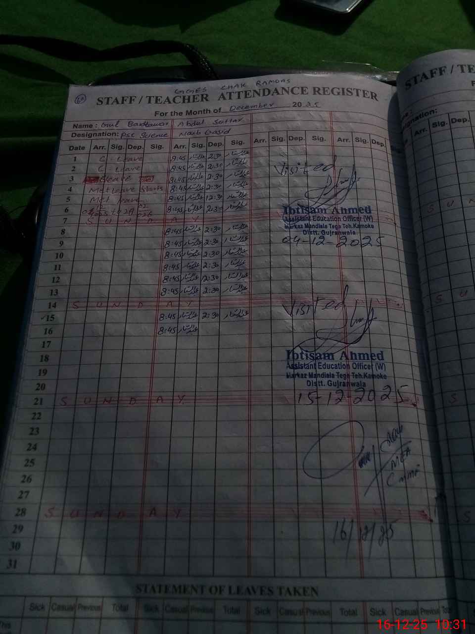 | Name: AS**** AR**** Designation: (School Headmaster's/Headmistress's) S.S.T.(a) Phone/Cell Number: 03**** |