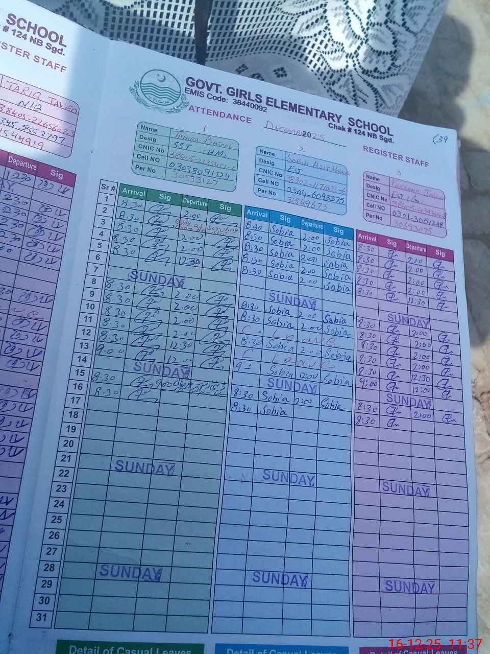 | EMIS Code: 38440092 | Name of School: GGES CHAK NO. 124 NB | |||