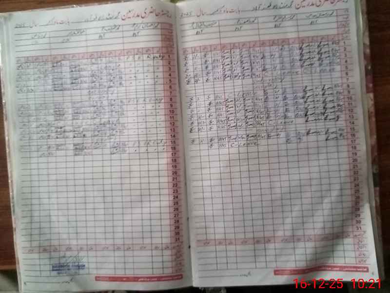 | CNIC | Full Name | Designation | R/C | Absence During Last Calender Month |