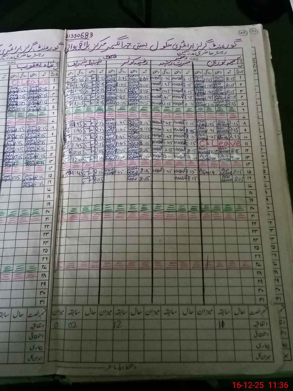 | CNIC | Full Name | Designation | R/C | Absence During Last Calender Month |