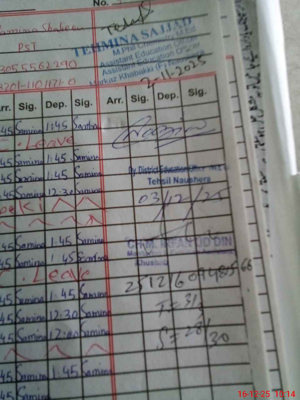 | Name: Bu**** Sh**** Designation: (School Headmaster's/Headmistress's) PST Phone/Cell Number: 03**** |