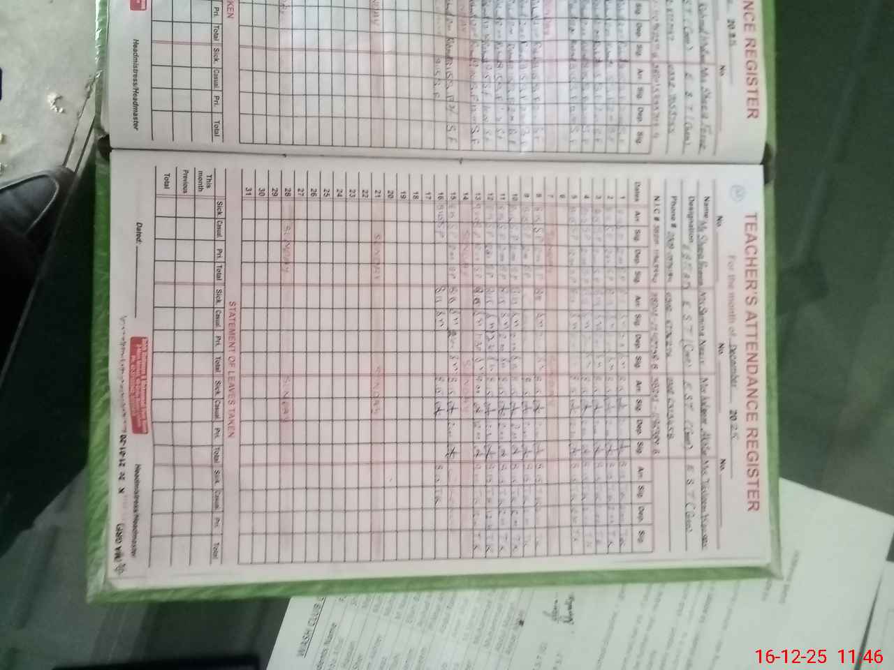 | Remarks (Use Separate Page if Required): student on sis 255 student on register 255 head count 251 no teacher absent one leave last aeo 16/12/25 | |||||