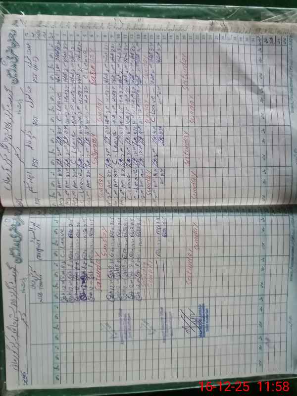 | CNIC | Full Name | Designation | R/C | Absence During Last Calender Month |