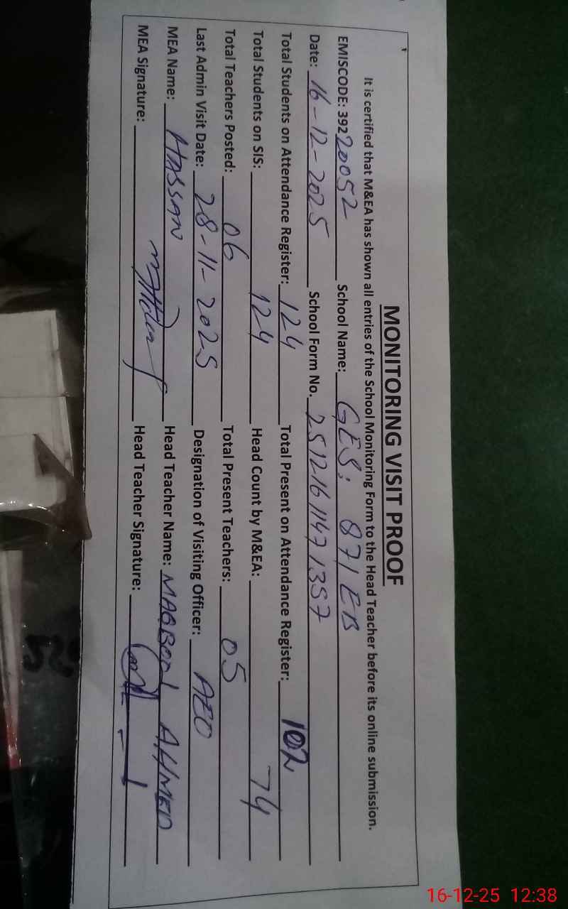 | EMIS Code: 39220052 | Name of School: GES 87 EB ARIFWALA | |||