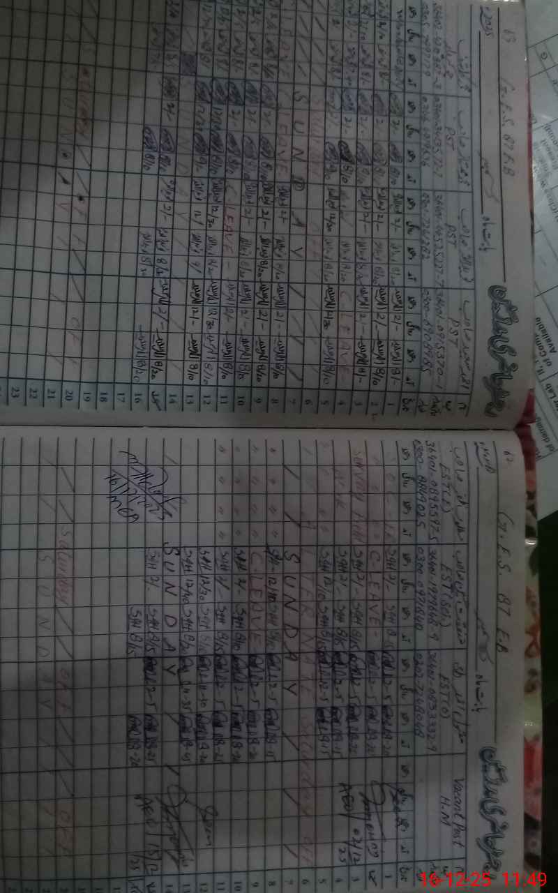 | CNIC | Full Name | Designation | R/C | Absence During Last Calender Month |