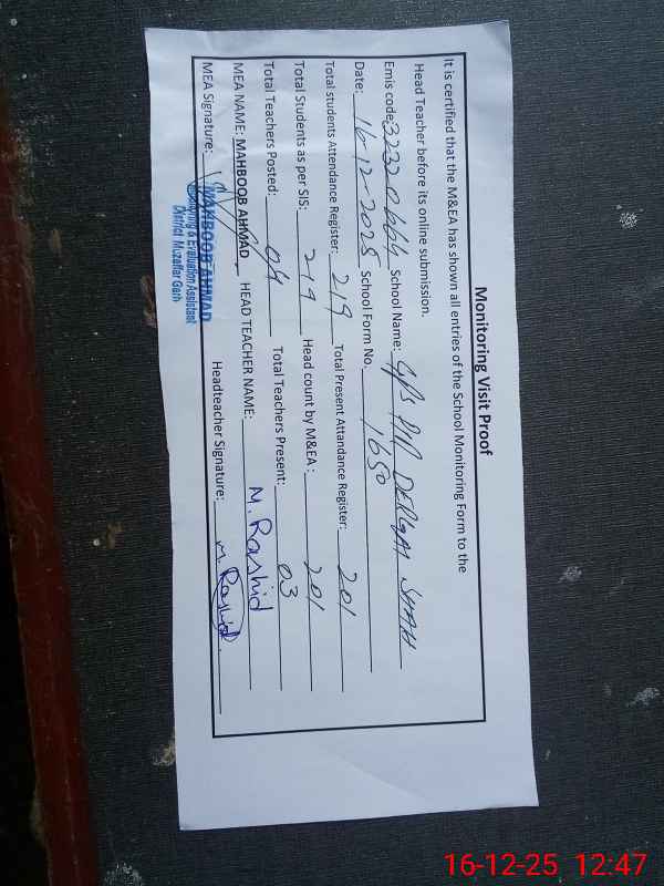 | EMIS Code: 32320664 | Name of School: GPS PIR DERGAI SHAH | |||